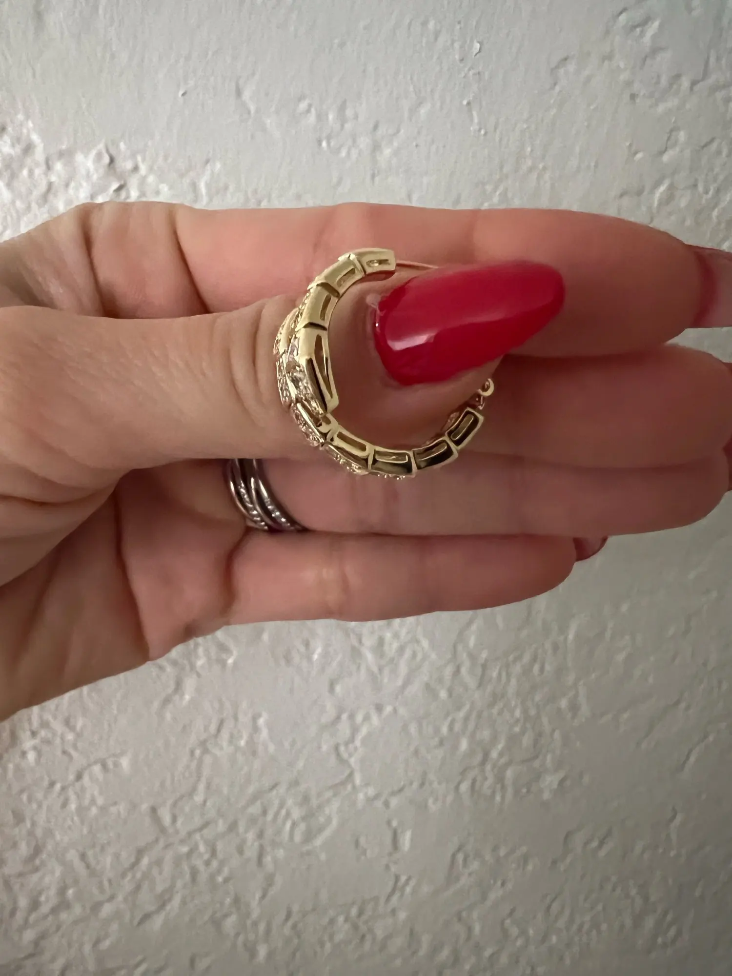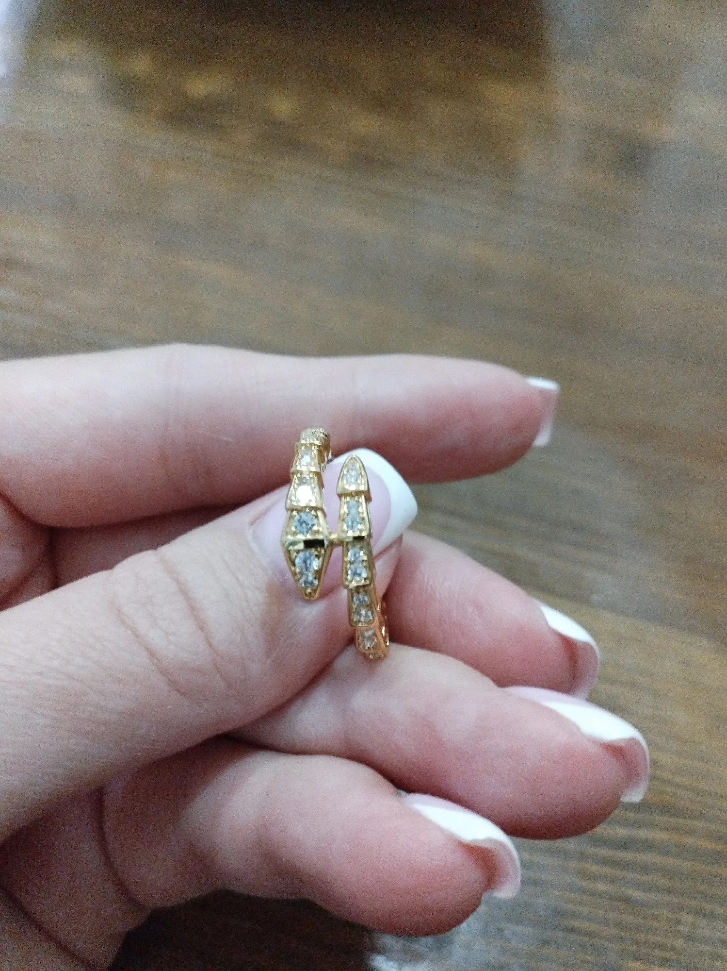 Astrid Boyer Pretty nice beautiful earrings and in the form of a snake. Light yellow color. I realized that now before the ruir, I need such a ring and a pendant